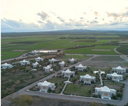 Cada Chozo cuenta con piscina privada, terrazas abiertas al viñedo y vistas panorámicas a la Cordillera de los Andes. El diseño se inspira en las construcciones ancestrales del piedemonte mendocino, utilizando materiales nobles y una estética que celebra la identidad del territorio.